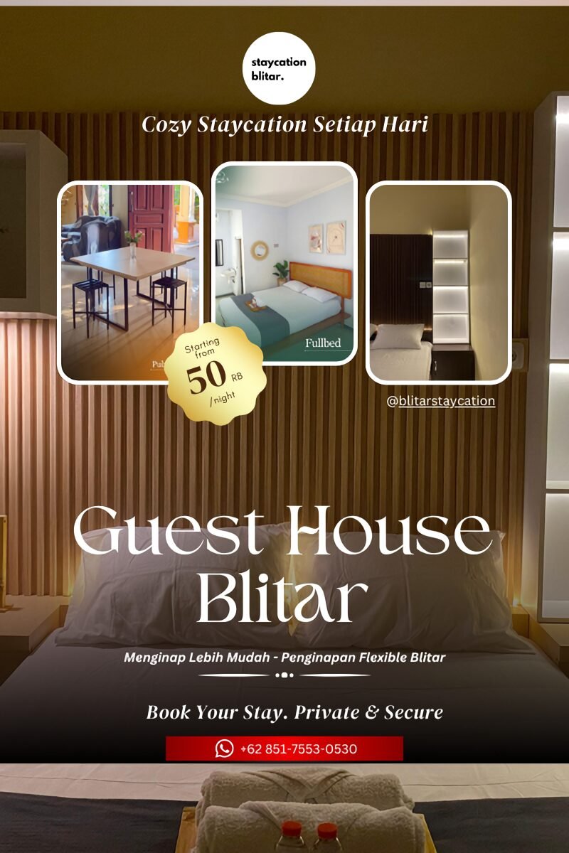 Tempat menginap nyaman dan tenang di pusat Kota Blitar. Cocok untuk liburan keluarga atau perjalanan bisnis. Fasilitas lengkap, bersih, dan pelayanan ramah.